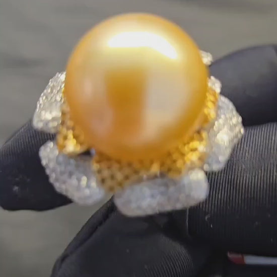 Celebrated as a symbol of good fortune, this natural South Sea saltwater golden pearl ring is a striking choice for Lunar New Year and meaningful gifting. With an impressive size of 15.3 cm, the pearl features a near perfectly round shape, exceptional luster, and an almost flawless surface. Its naturally rich golden tone is vivid, radiant, and highly admired by fine jewelry collectors.
