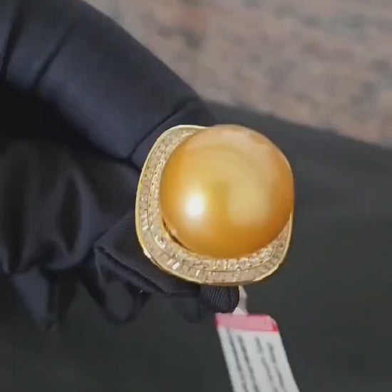 A rare symbol of prosperity and celebration, this natural South Sea golden pearl ring is a true collector’s treasure. Measuring an impressive 16.6 cm, the pearl displays a near perfectly round shape, exceptional luster, and an almost flawless surface. Its rich golden hue is naturally formed and highly sought after by fine jewelry connoisseurs.