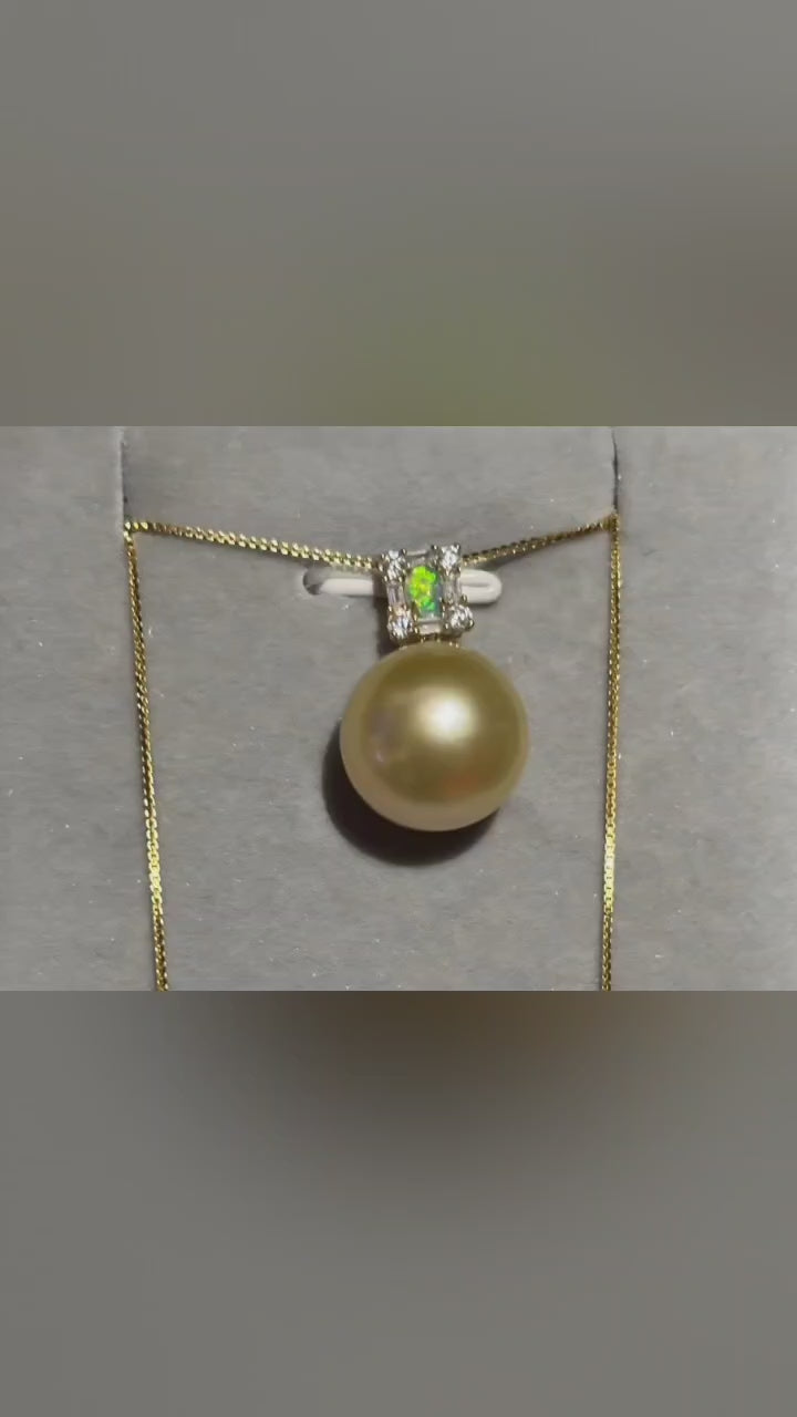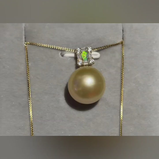 Materials: Natural South Sea golden pearl, 18k gold, natural opal, silver chain