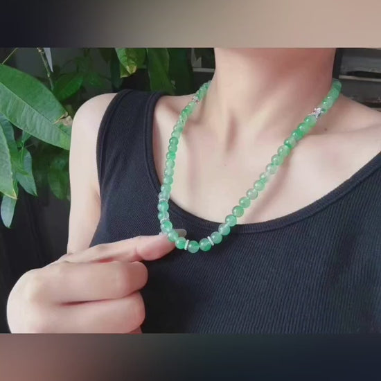 这款翡翠项链无裂纹、无黑点、无可见杂质,呈现出精致优雅的光泽,完美契合日夜场合。镀金纯银隔珠增添了一抹温暖的对比,更显精致考究。