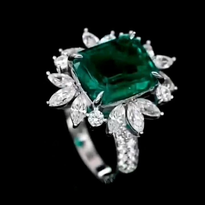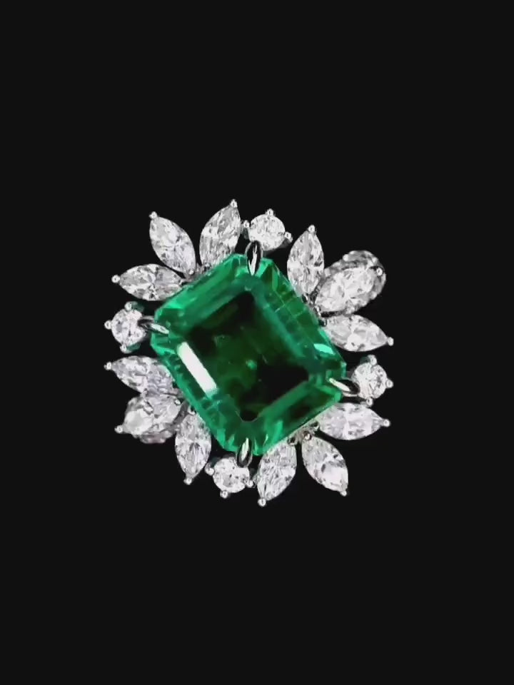 材质:哥伦比亚养殖祖母绿、925纯银、镀金、镀铑、仿钻石