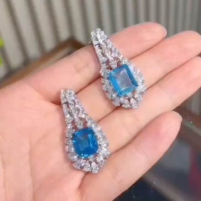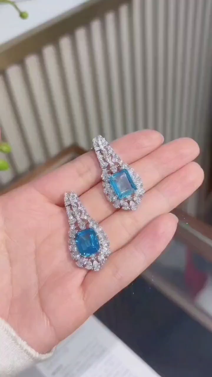 材质: 6克拉天然托帕石、高科技钻石、925纯银镀18K金