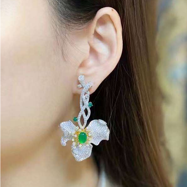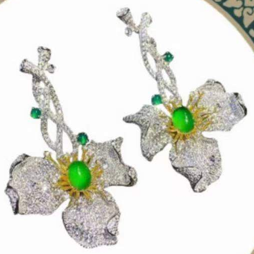 材质:天然绿色玉髓、合成钻石、925纯银镀18K金