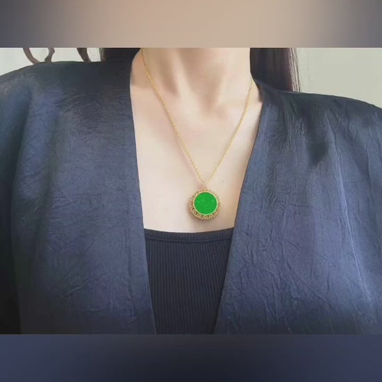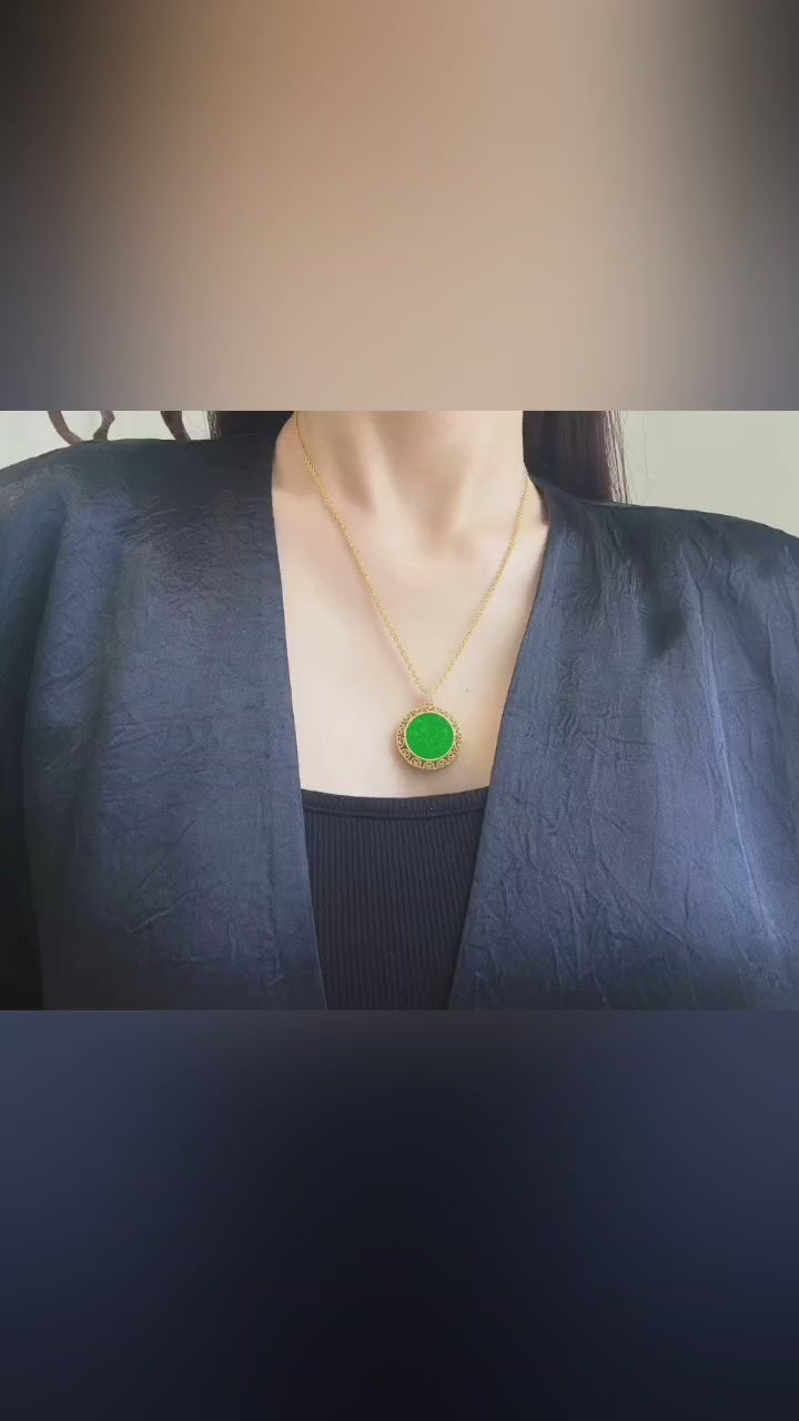 这款吊坠采用925纯银打造,并镀以18K金,形成温暖的对比,更衬托出翡翠的浓郁色泽。它象征着和平、守护和幸福,兼具美观与寓意,是高级珠宝收藏中永不过时的珍品。
