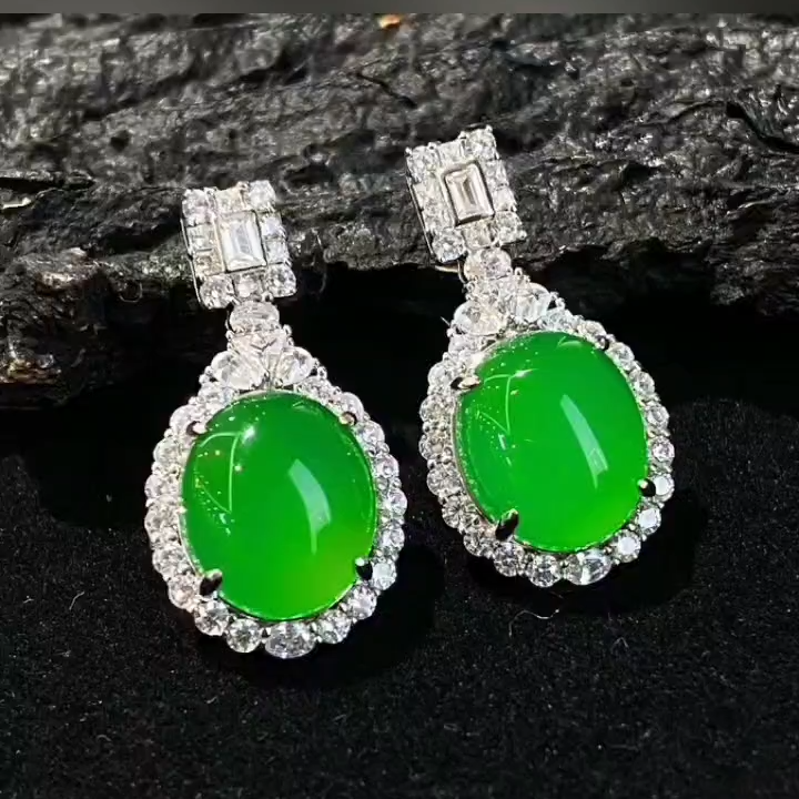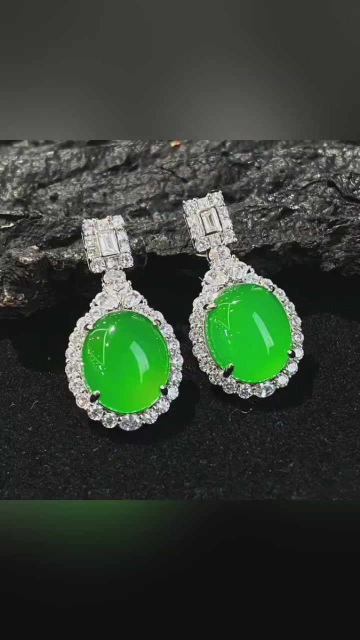 材质:天然帝王绿玉髓,925纯银镀18K白金