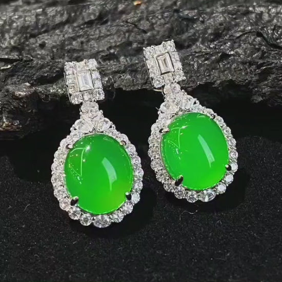 这款高品质耳环采用天然帝王绿玉髓,精选色泽浓郁、净度极佳的宝石。每颗椭圆形宝石尺寸为 12 x 14 毫米,整体造型均衡优雅。