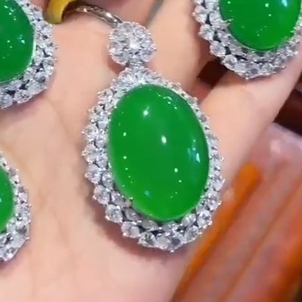 帝王绿玉髓鸽蛋吊坠,镶嵌钻石