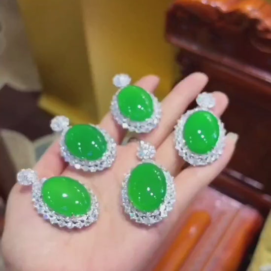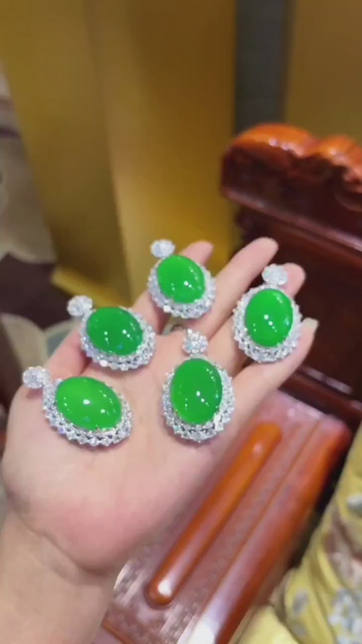 材质:天然帝王绿玉髓、高科技钻石、925纯银镀18K白金