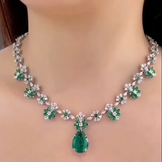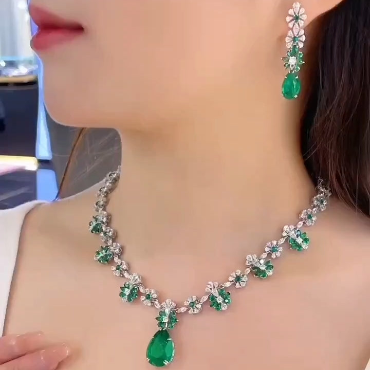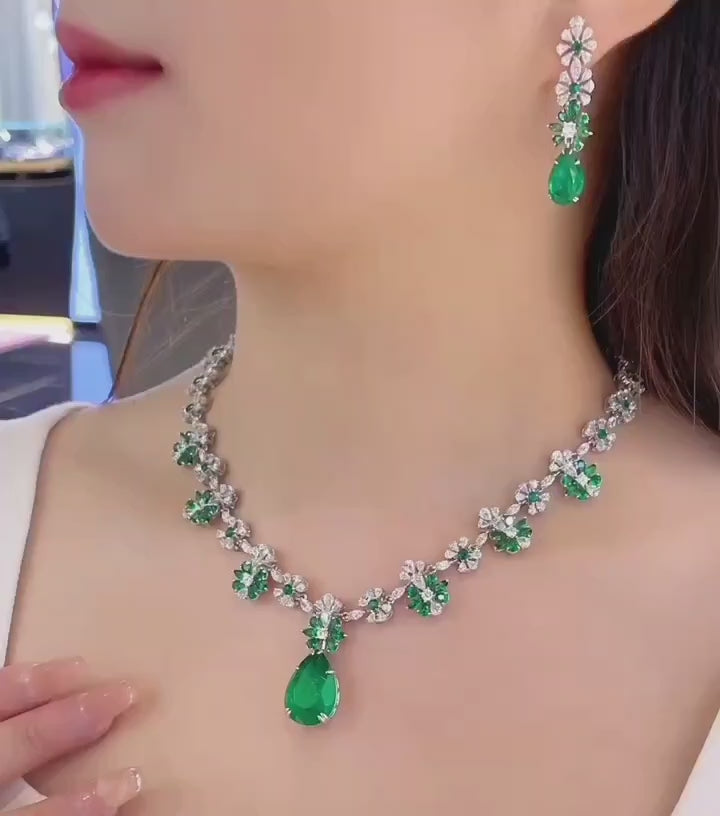 实验室培育哥伦比亚祖母绿项链耳环套装