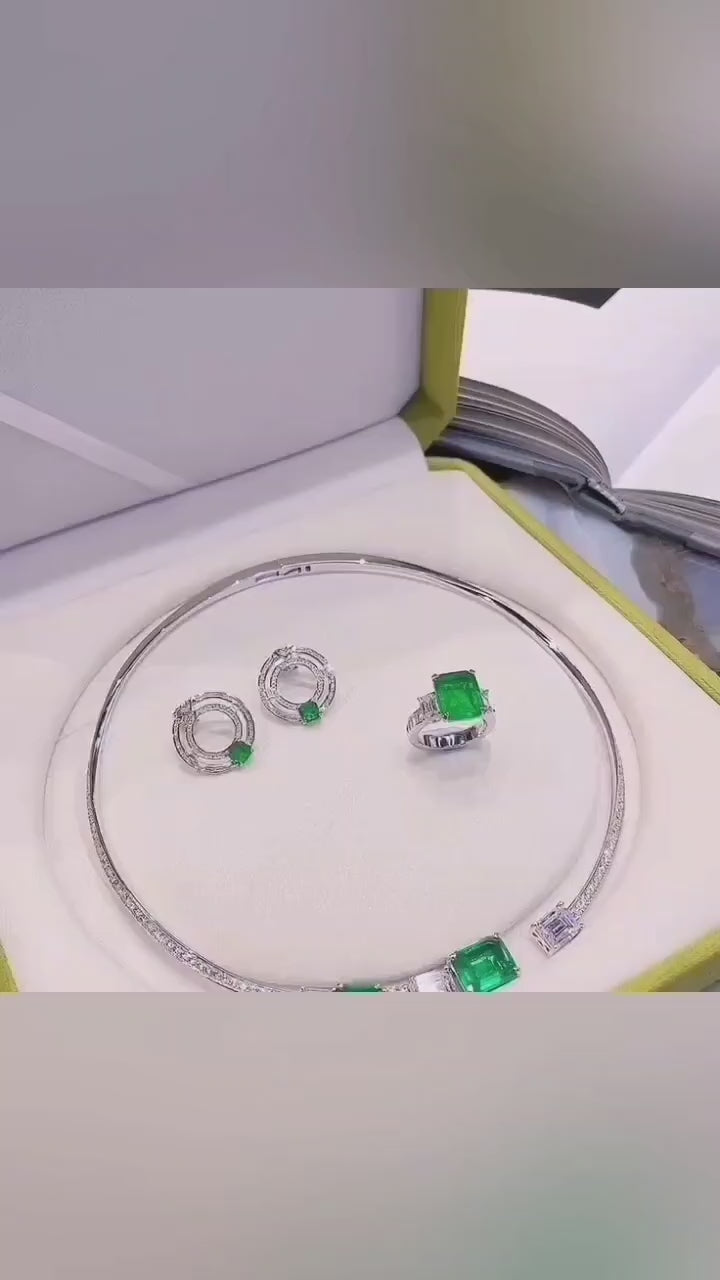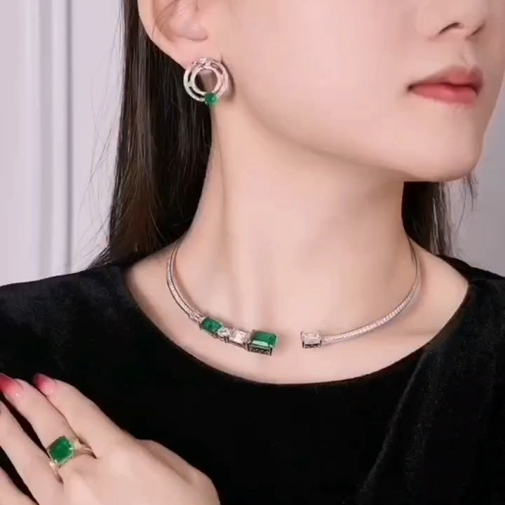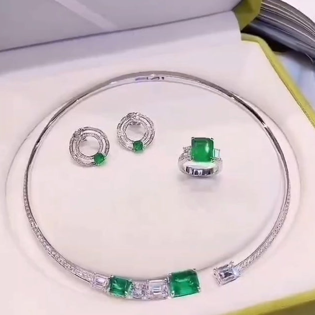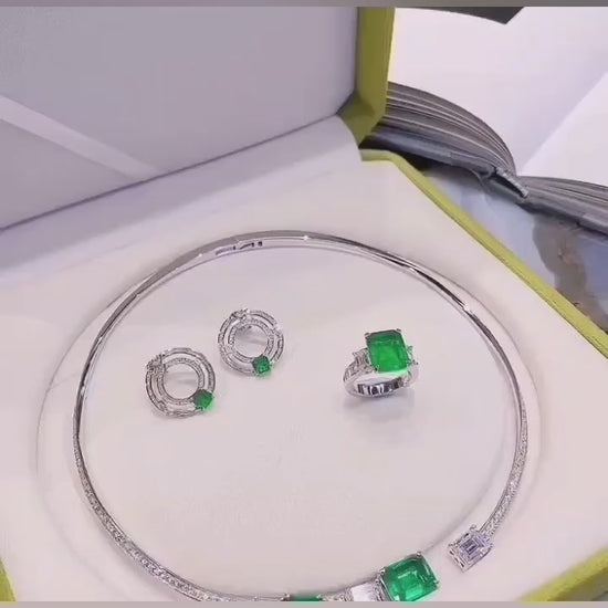 实验室培育哥伦比亚祖母绿项链耳环套装