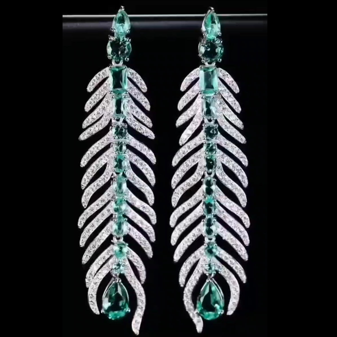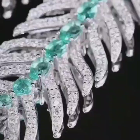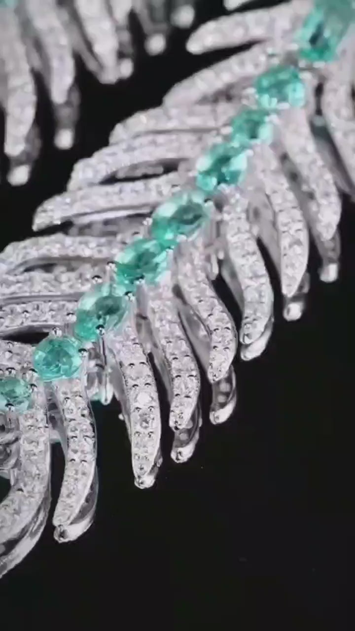 材质:实验室培育帕拉伊巴碧玺、高科技钻石、18K白金镀层纯银