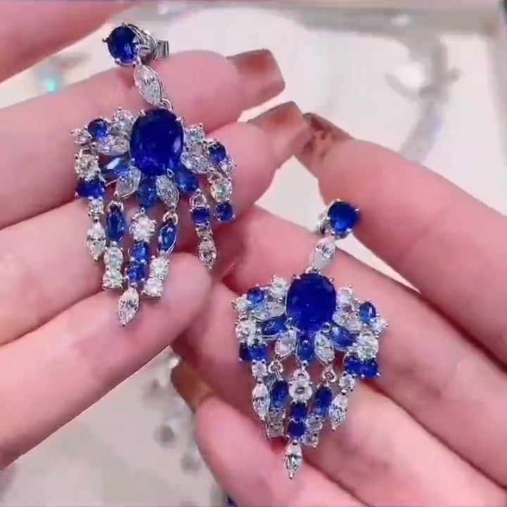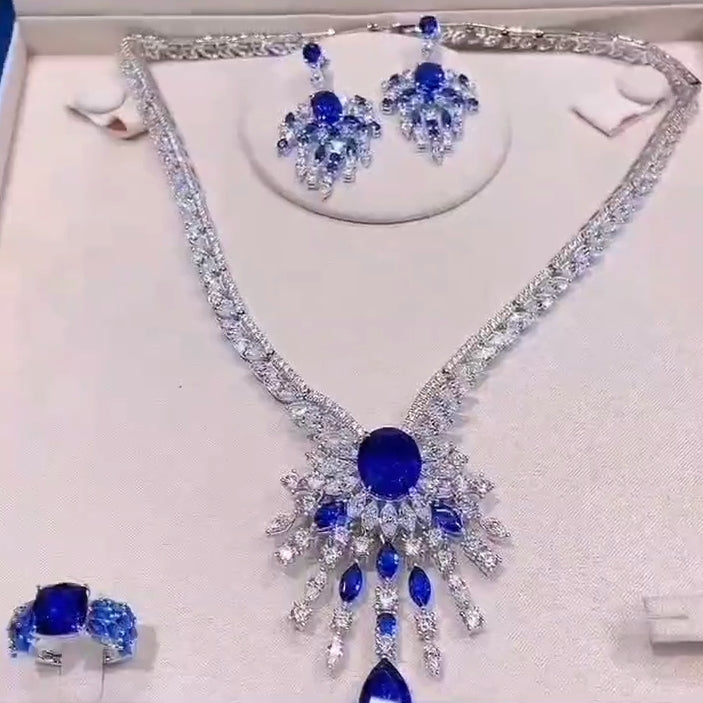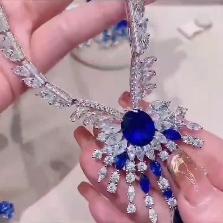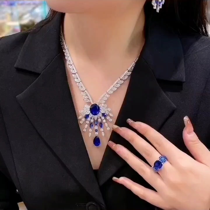 实验室培育皇家蓝宝石项链耳环套装