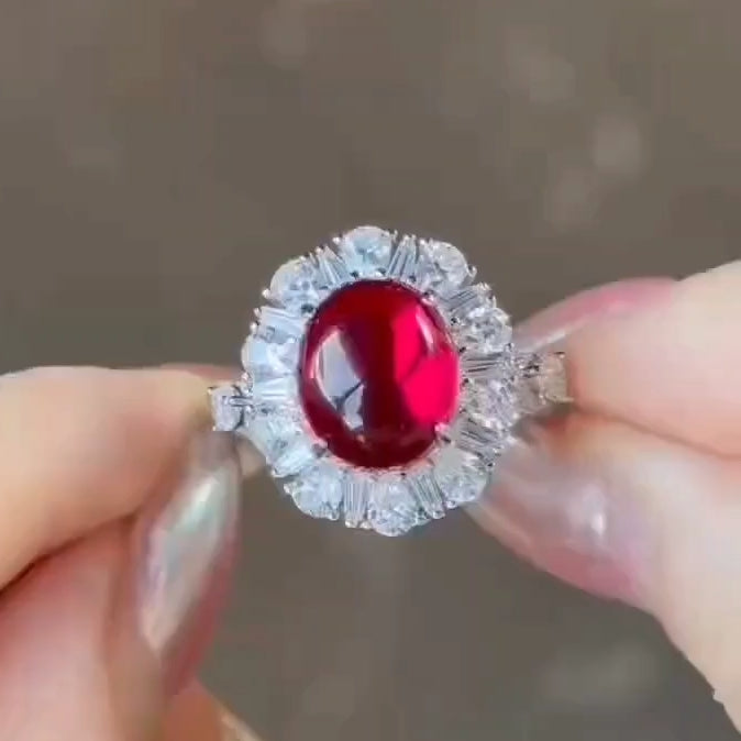 材质:实验室培育红宝石、高科技钻石、18K白金镀层纯银