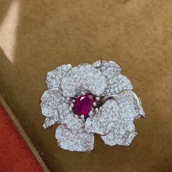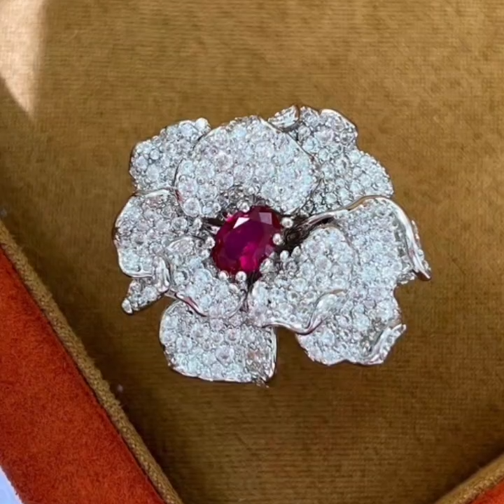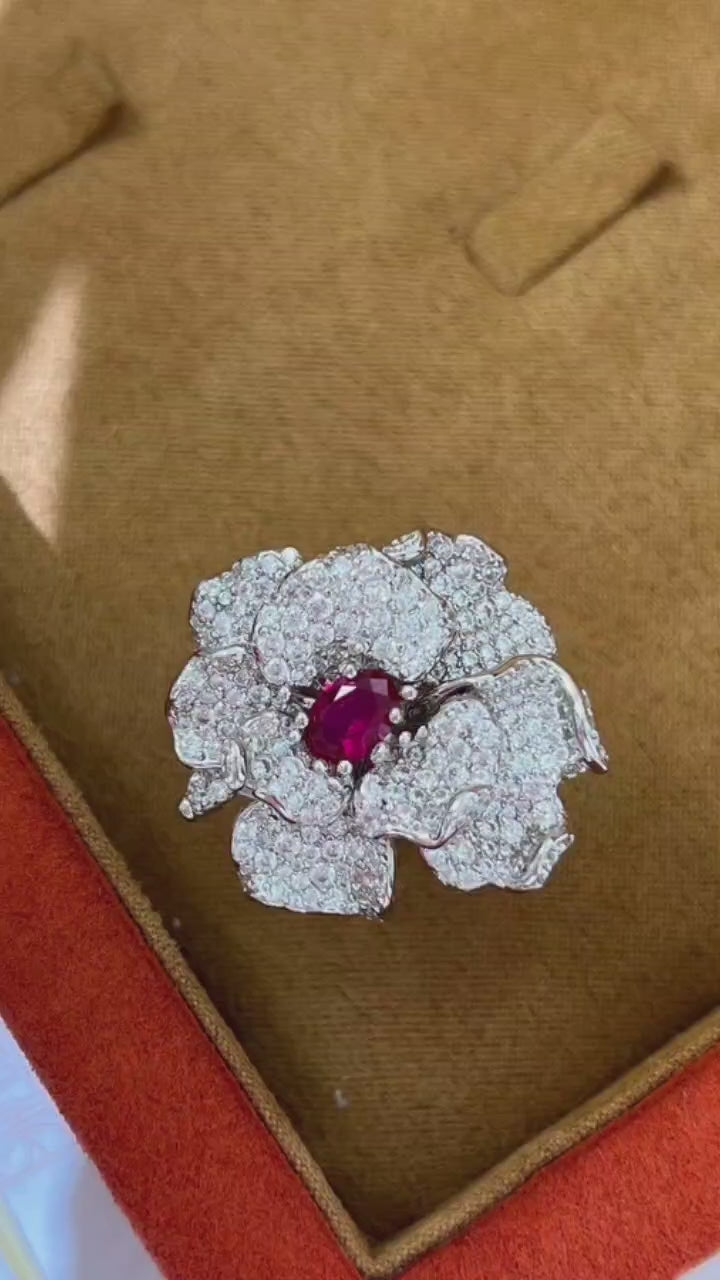这款3D立体花朵戒指,镶嵌一颗1克拉高品质养殖红宝石,散发着迷人的魅力,定能让您心动不已。戒指采用925纯银打造,并镀以真金,设计精巧,层次分明,尽显奢华夺目之美。