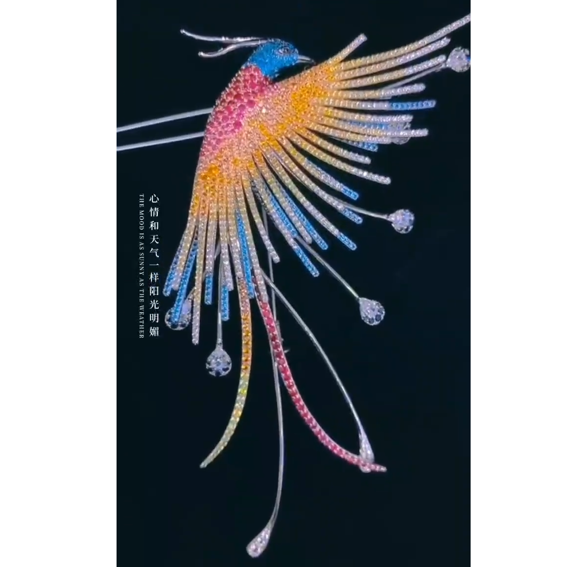 设计:凤凰图案,渐变宝石效果,手工镶嵌钻石