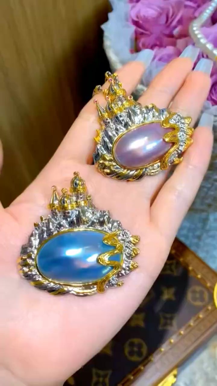 柔粉色马贝珍珠胸针/吊坠