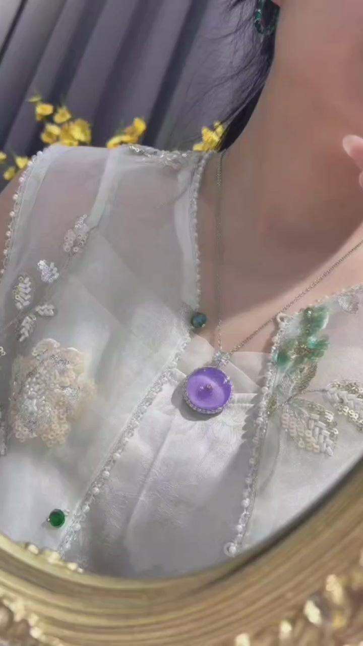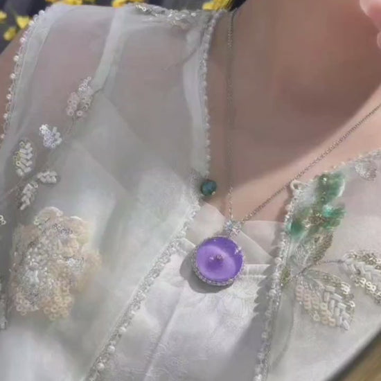 水紫色珐琅安全扣吊坠